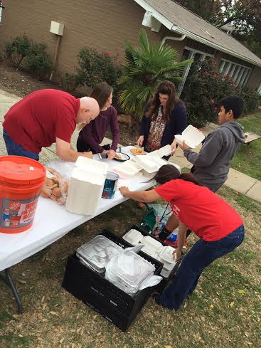 One of the things my dad and I do on Thanksgiving morning is Serving Irving. Its hosted by a church in my hometown and we take food out into the community and feed. We serve food to neighbors and friends in an apartment complex or trailer village. These are usually spots where the church who sponsors the feed day does ministry work or already has an established connection. But, these same principles could work for a new feeding site, serving holiday meals to homeless, or setting up in an open area located in a downtown section of your community.
